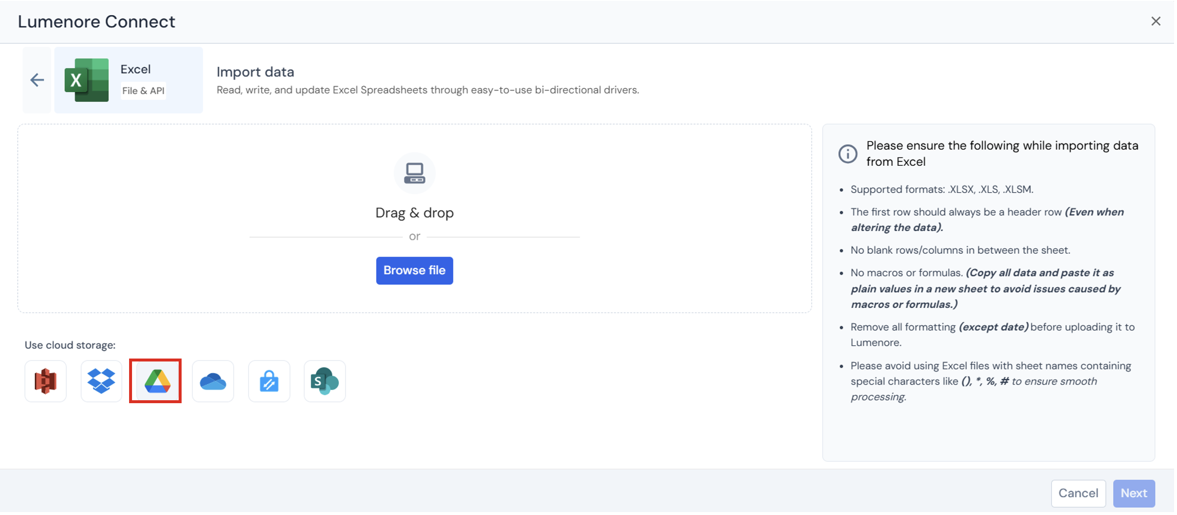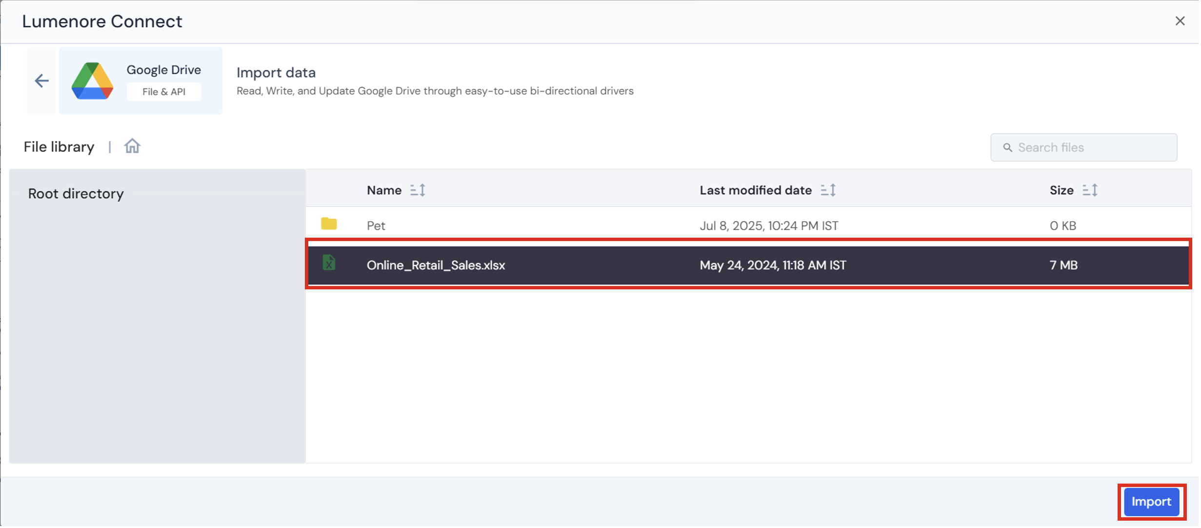 - Select the file you want to import and click Import.