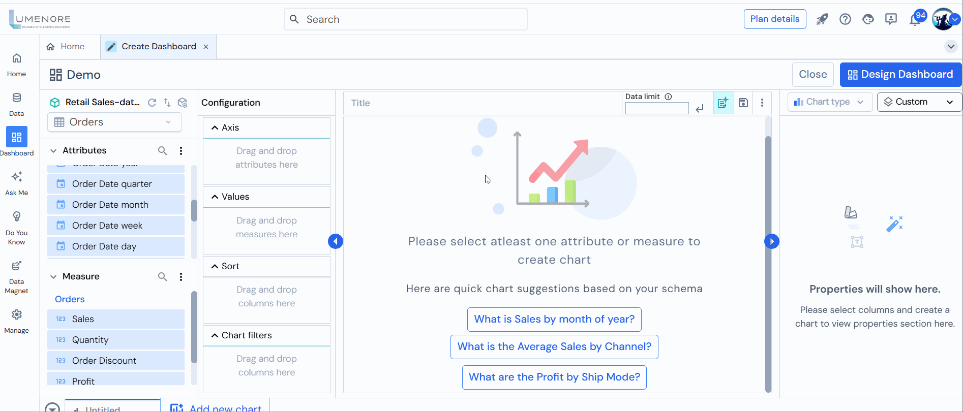 To create a dashboard in Lumenore follow below steps:
