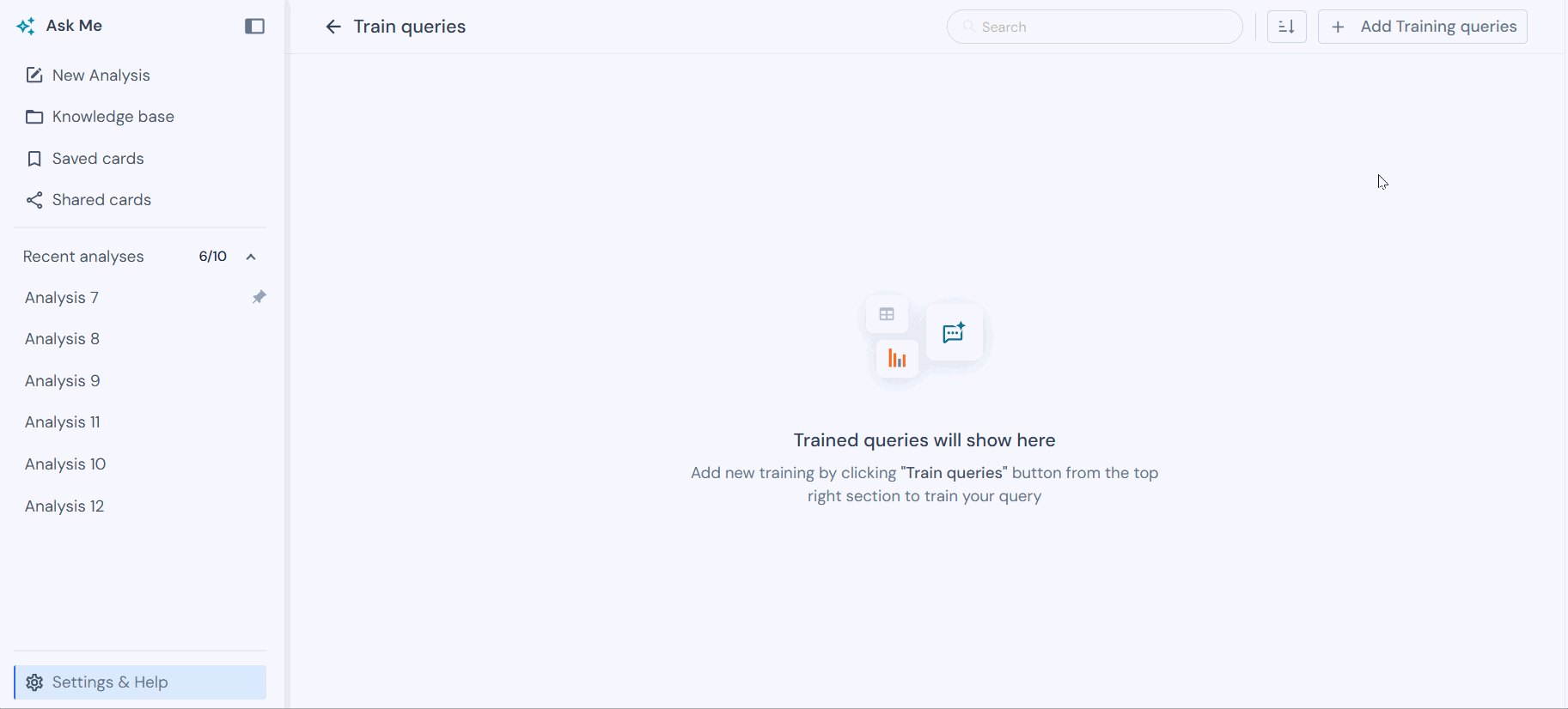 Step 7: You will return to the Training page, where all the trained queries are listed. From here, you can edit or delete any trained query as needed. Once the training is complete, you can start by asking the queries you have created in Ask Me to generate the corresponding insights.