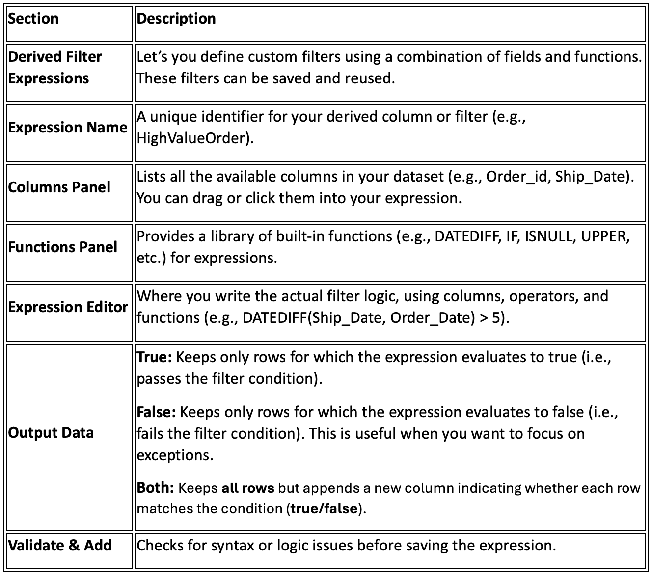 Step 5: Choose the appropriate column(s) and apply relevant function(s) to define your filter logic in the expression editor.